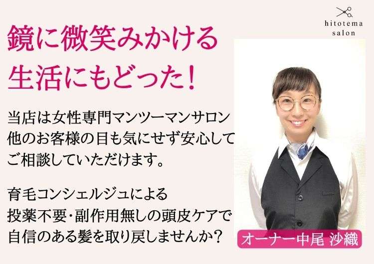 今まで諦めていた頭皮の悩みを「hitotema salon」で解決することでお客様の毎日が変わります。