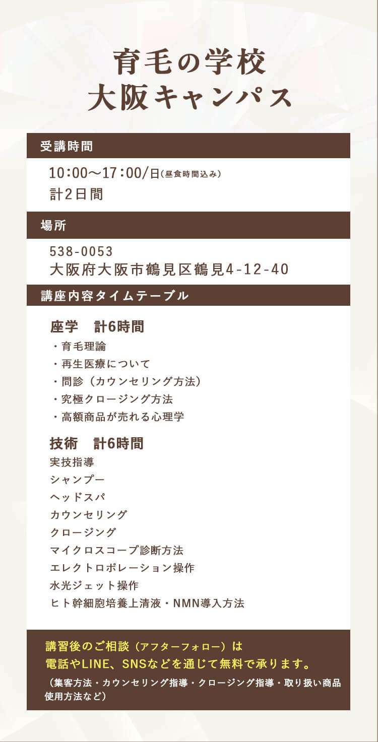 育毛の学校 大阪キャンパス・育毛技術講座のご案内